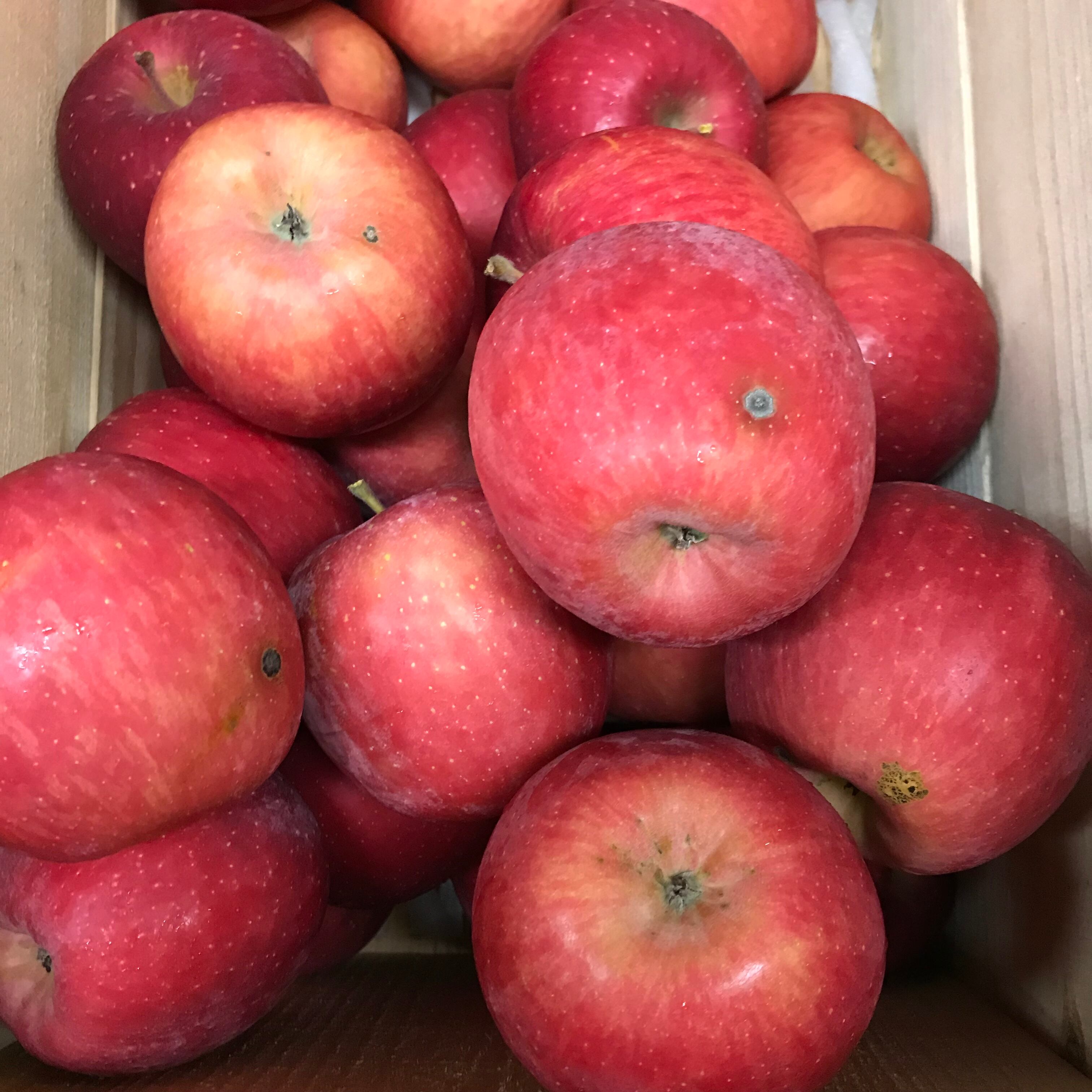 ツル元の割れや傷などがありますが、味は変わらない美味しいりんごです!